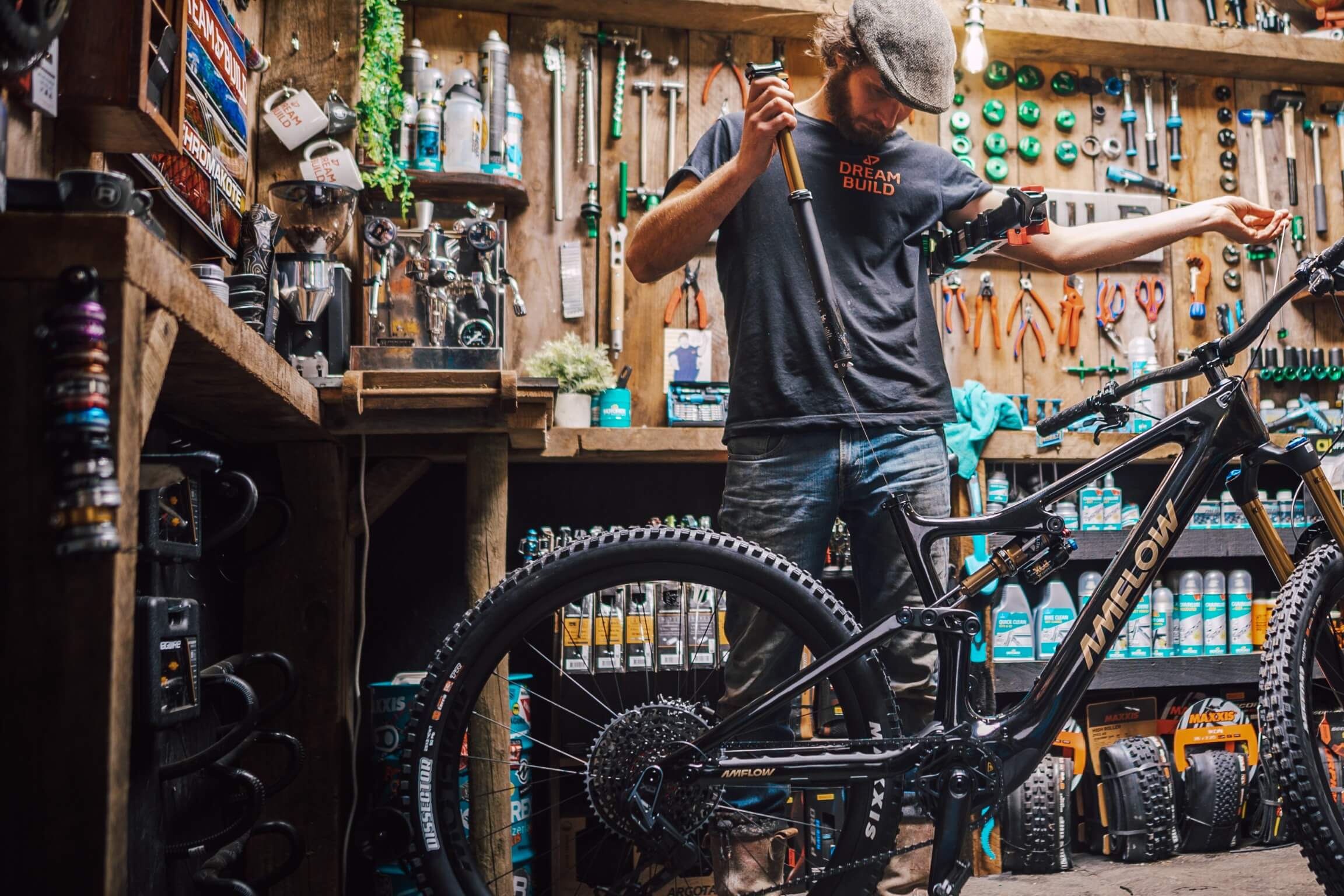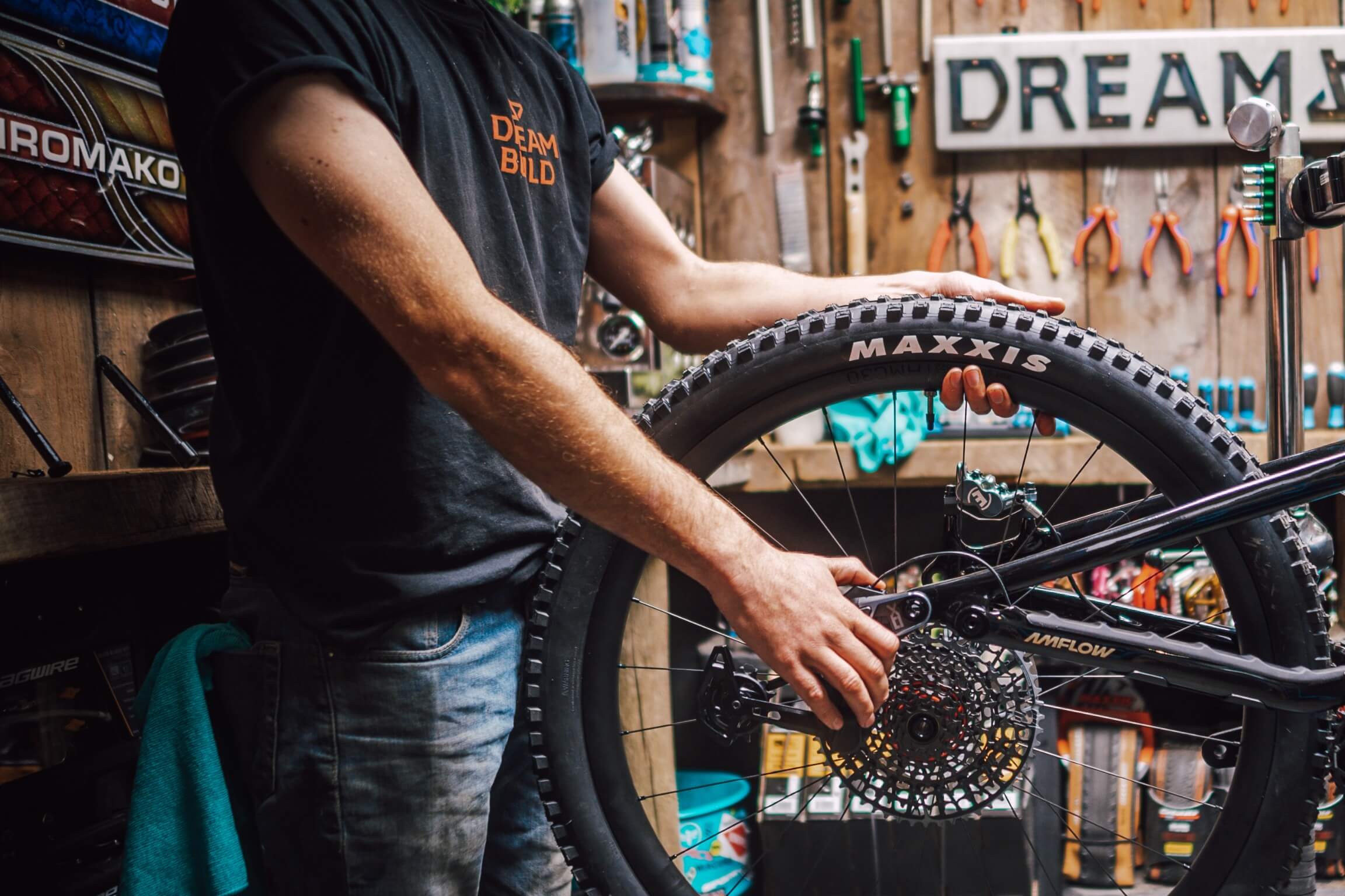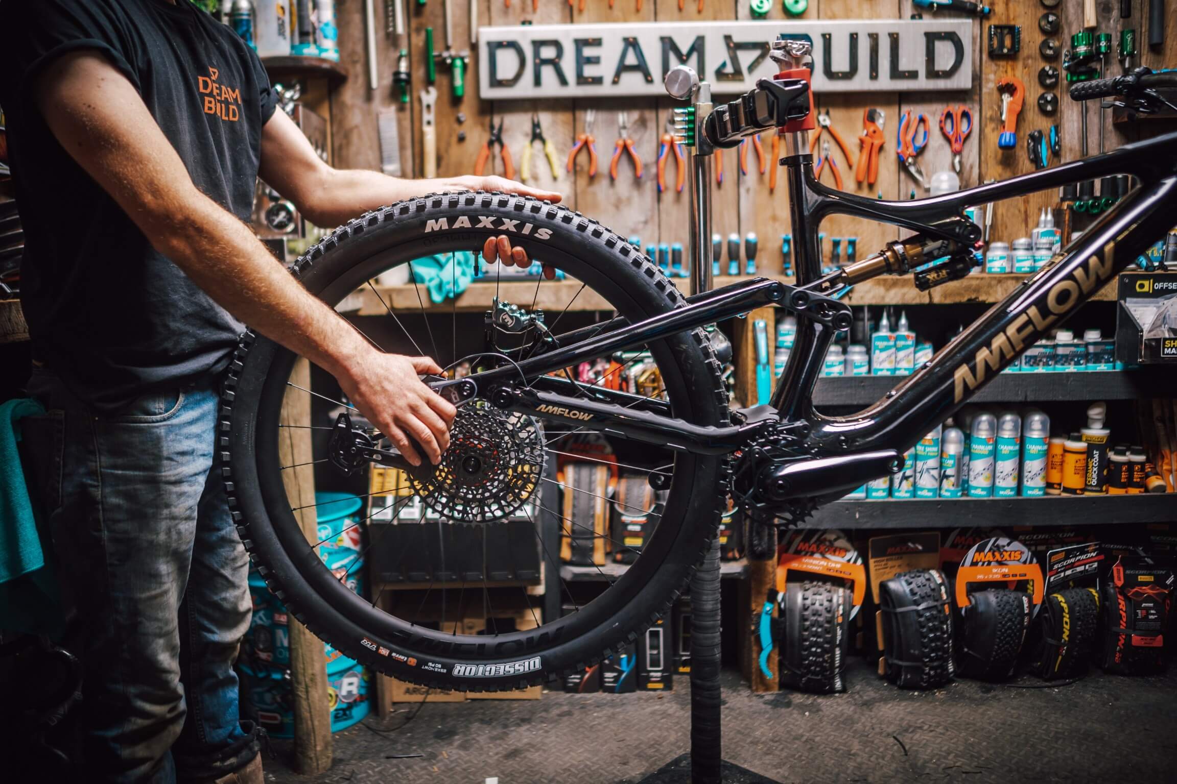 Give the chain a visual once-over. It should be lightly coated in lubricant — not dry and dull (needs lube), not black and gunky (needs cleaning). A well-maintained drivetrain shifts cleaner and lasts significantly longer. Visit Amflow Support for detailed drivetrain care guides.