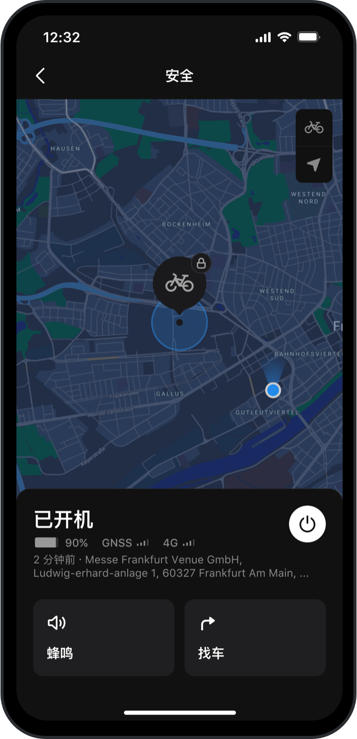 Avinox Ride app 上可显示车辆实时位置和状态,帮你快速定位。